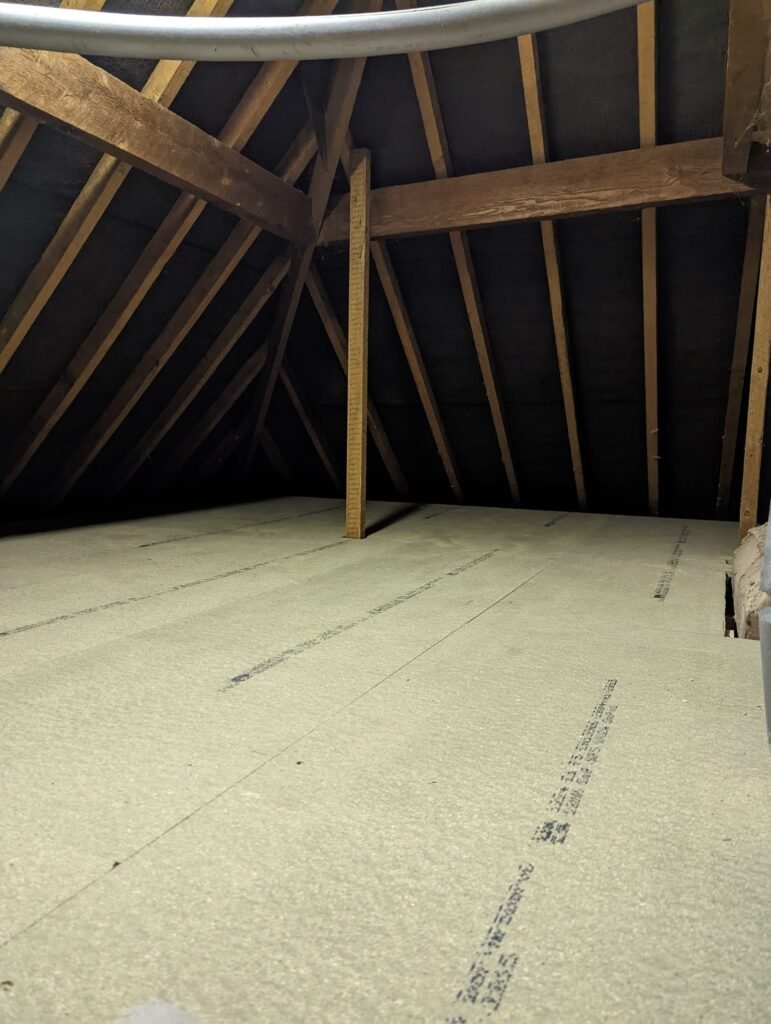 In modern homes, loft insulation is usually installed at a much greater depth to meet current energy efficiency standards. Our raised loft boarding system is installed above the insulation, allowing proper airflow and preventing compression of the insulation layer. This ensures the performance of your insulation remains unchanged while creating safe and usable loft storage space.